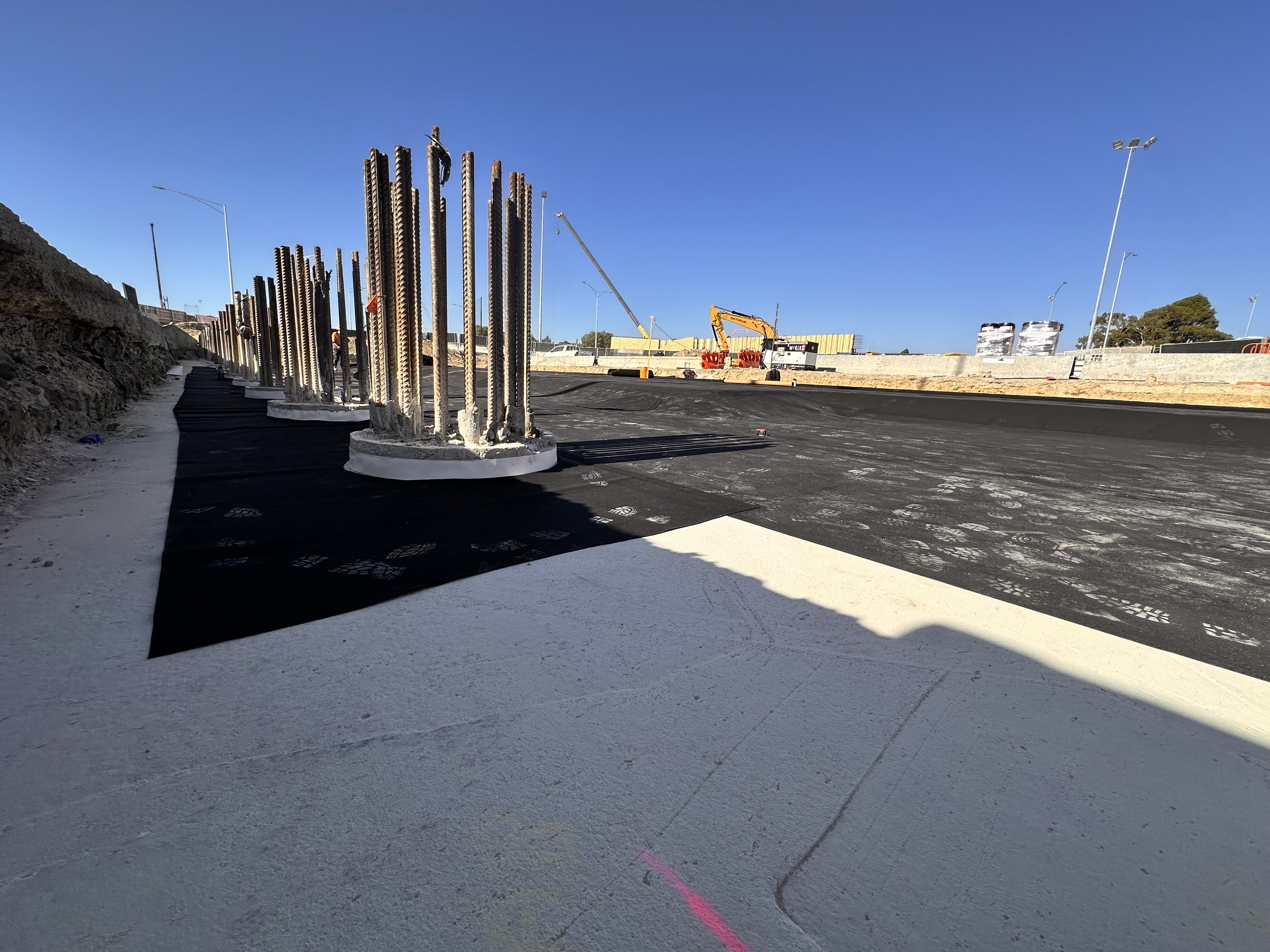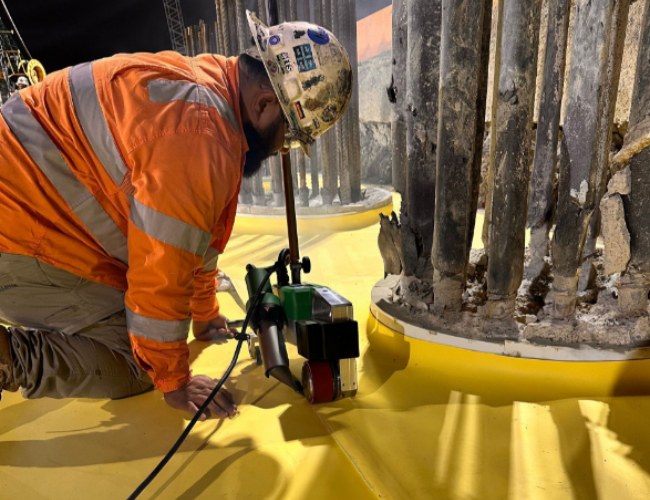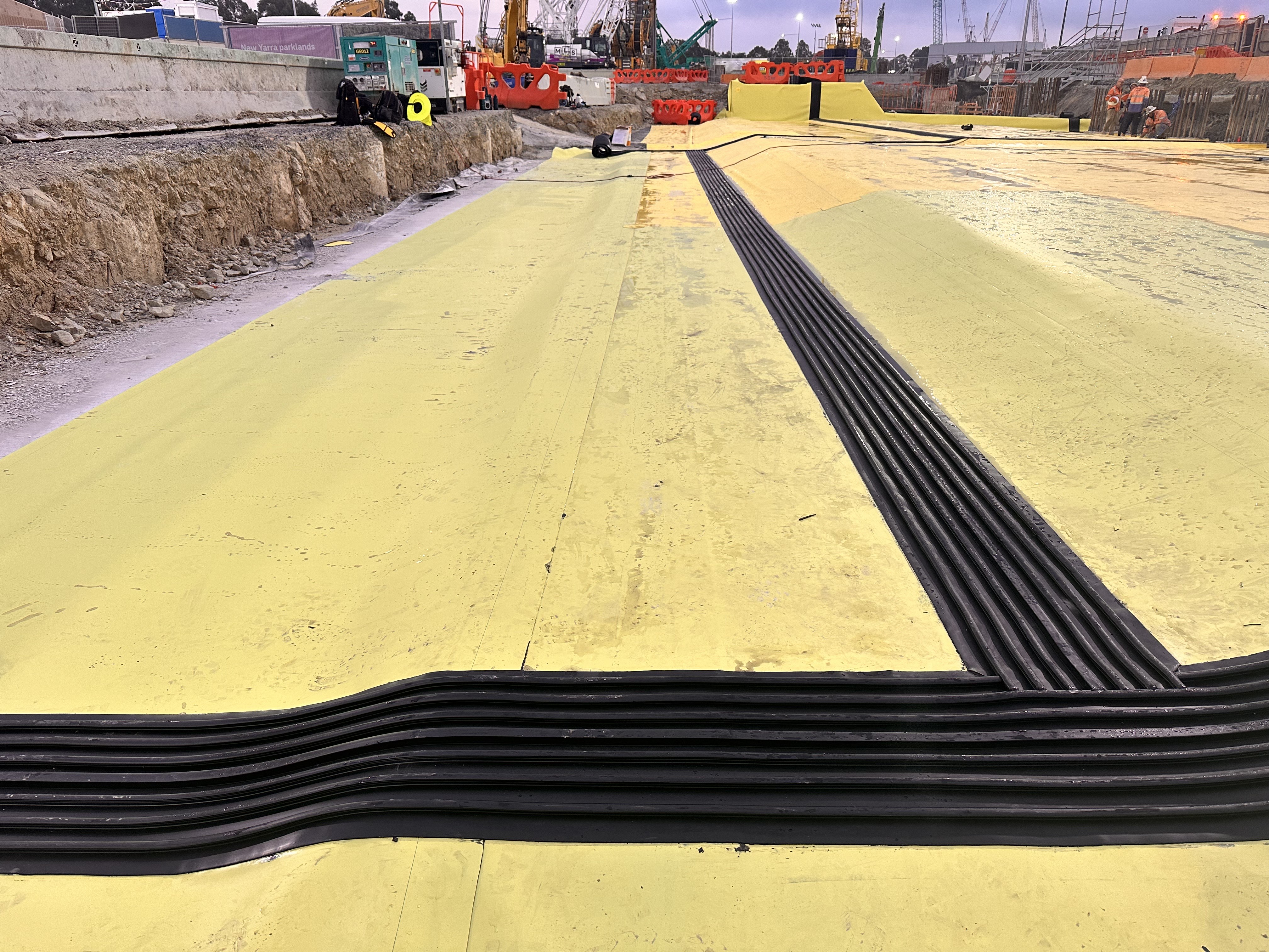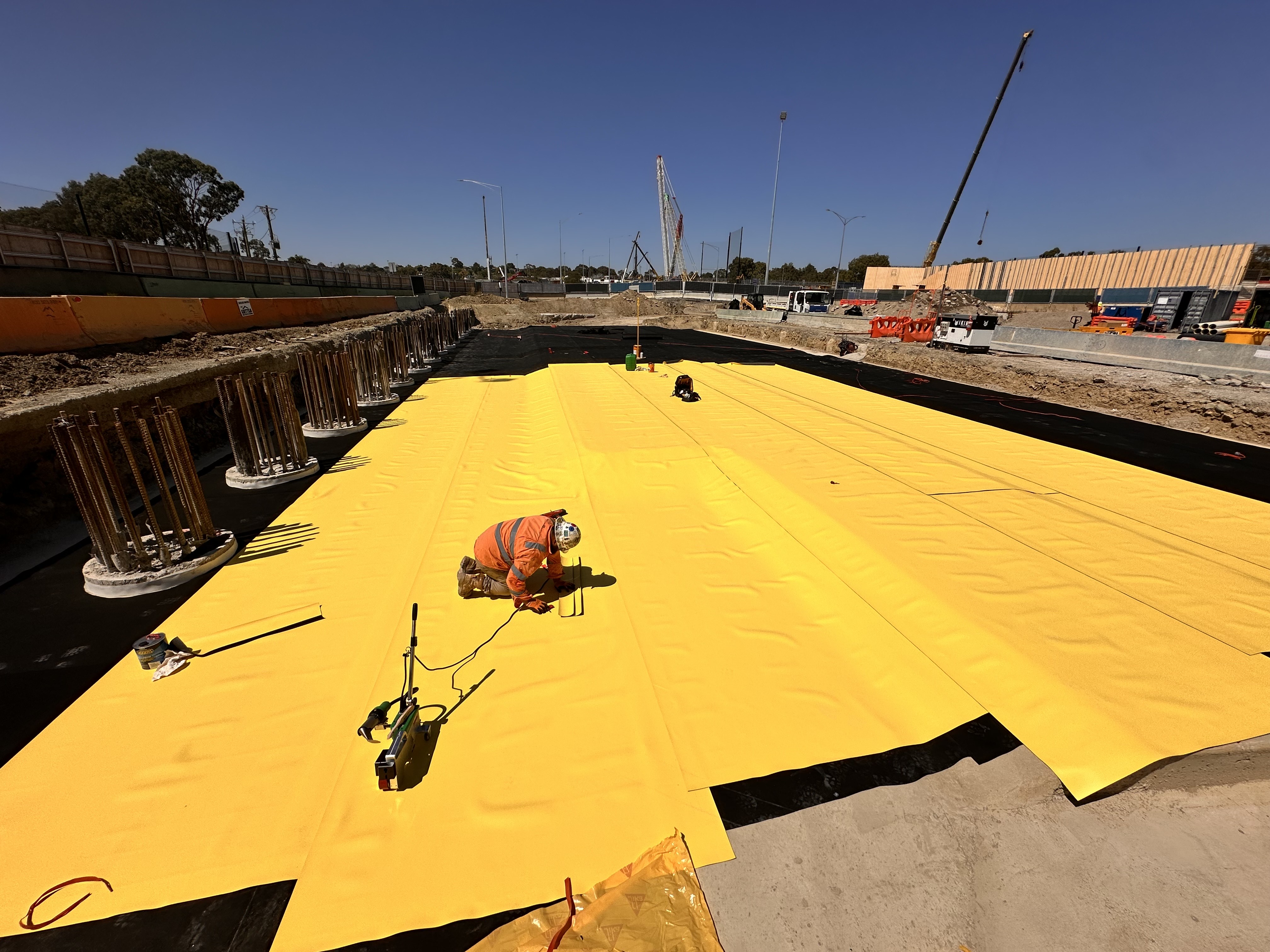 In April 2025, works commenced at the Manningham base slab, starting with D-wall substrate preparation and micropile termination detailing. Geotextile and Sikaplan membrane were then installed, followed by application of auxiliary components to form reinjectable compartments.